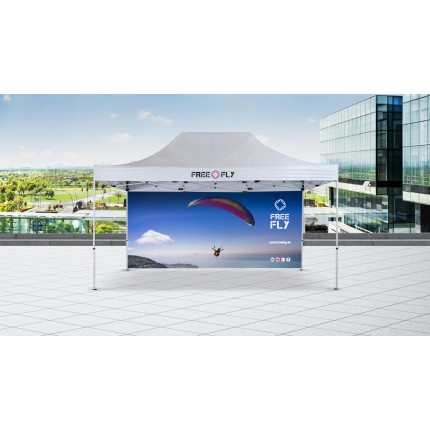 Il rivestimento del gazebo è resistente agli agenti atmosferici e impermeabile, anche in condizioni di vento molto forte, grazie al materiale waterproof della copertura. È possibile personalizzare la mantovana del Gazebo 3x4.5 con la stampa in alta qualità e l’applicazione del proprio logo aziendale sulle pareti, così da rendere ancora più unico il proprio spazio pubblicitario con un gazebo brandizzato accattivante, economico e funzionale.