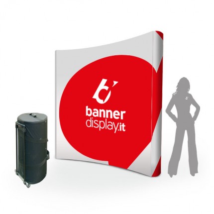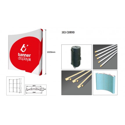 Il Pop Up 3x3 curvo è una struttura espositiva portatile. Un prodotto realizzato per creare un aspetto professionale e di impatto del vostro stand all'interno di una fiera o una mostra con lo scopo di attirare più gente possibile.